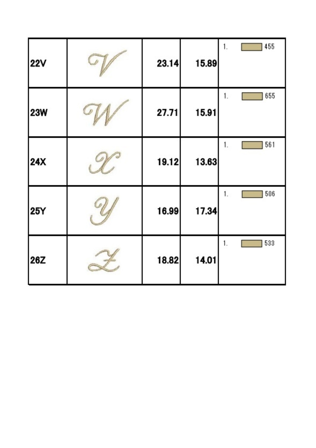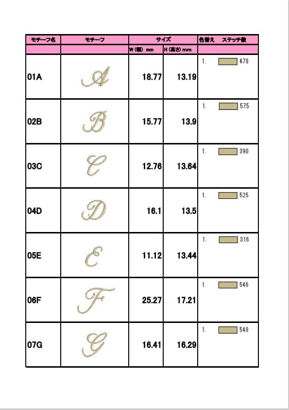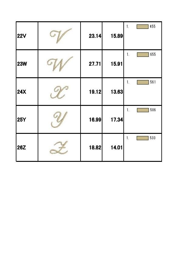 ミシン刺繍用の筆記体フォントが出来上がりました。